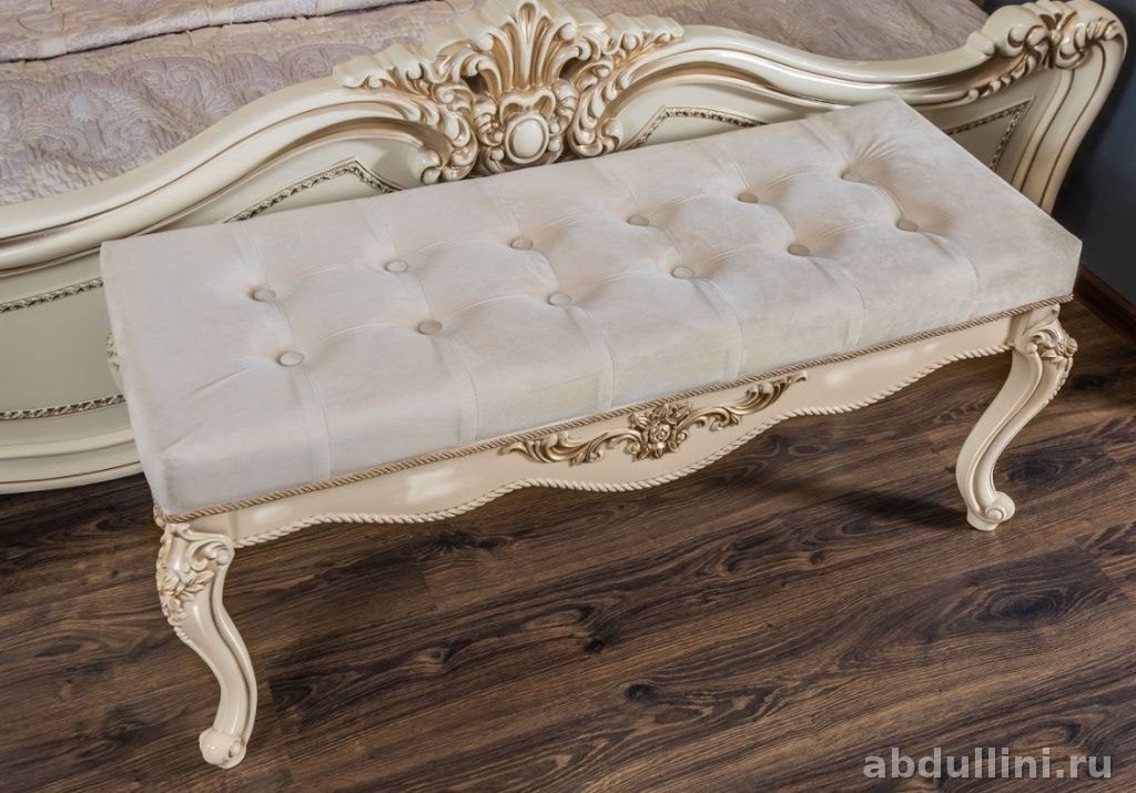 Резные узоры и изогнутые ножки добавляют интерьеру элегантности. Прочная конструкция и удобное сиденье делают банкетку практичным выбором.