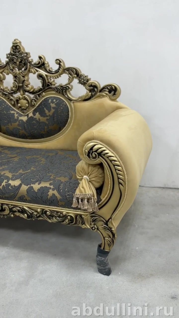 Банкетка «Латифа» — это низкая кушетка с мягкой спинкой и подлокотниками, выполненная в классическом стиле с элементами барокко. Подойдет для гостиной, спальни или будуара. В комплекте идет декоративная круглая подушка в тон обивки.