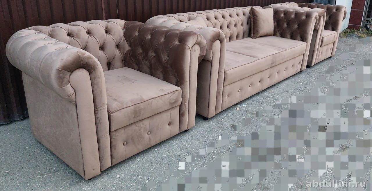 Диван Честер с креслами — классика с капитоне