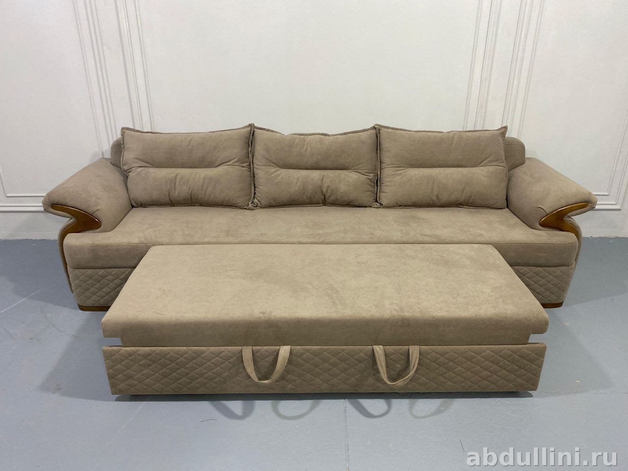 - Комплектация: диван трехместный, выдвижной пуф/столик