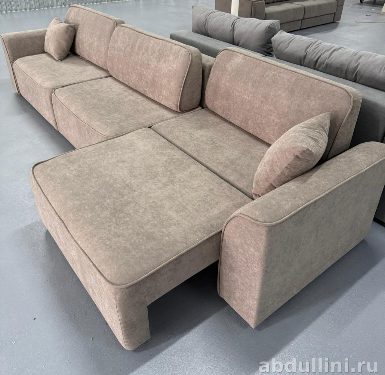 Модульная конструкция из трех секций даёт менять конфигурацию под ваше пространство. В комплекте идут две декоративные подушки и боковые модули с мягкими подлокотниками.