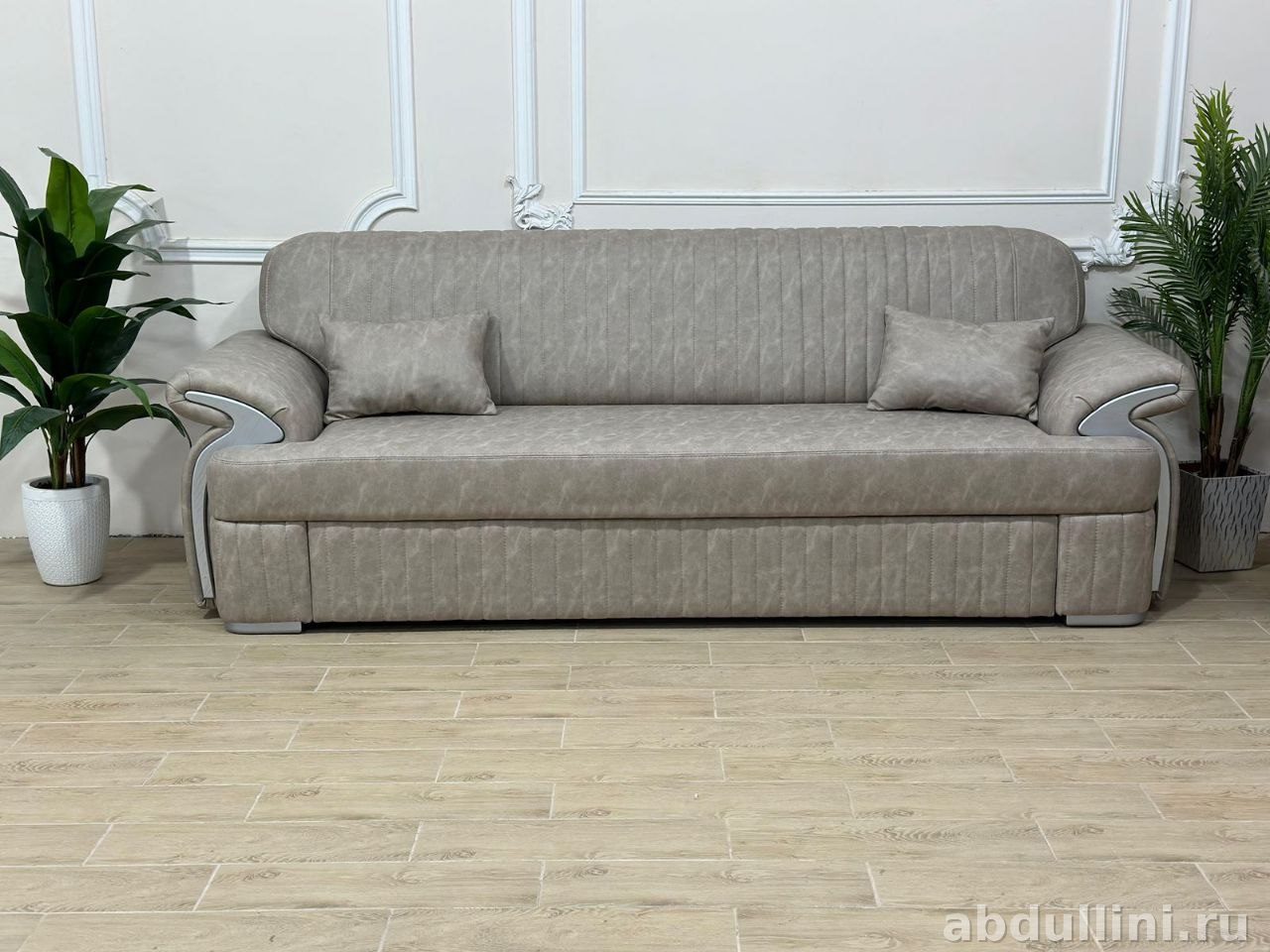 - Диван: трехместный, ширина 250 см, глубина 95 см, высота 90 см. Спинка с вертикальной прострочкой для рельефности.