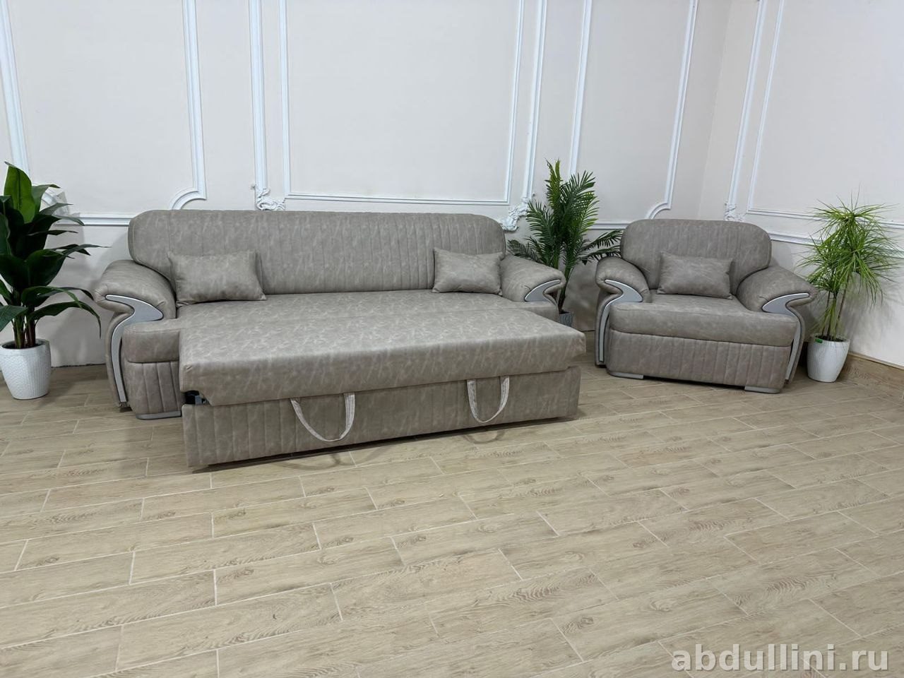 - Комплектация: диван, кресло, декоративные подушки в тон.