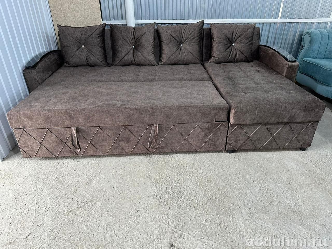 Угловой диван ‘Крокодил’ — это сочетание удобства, функциональности и лаконичного дизайна. В комплект входит сам диван и пуф с дополнительным местом для хранения. Основной цвет обивки — приглушенный коричневый, напоминающий оттенок какао или мокрого песка. Ткань имеет матовую текстуру с легким ворсом, создающим эффект бархатистости.