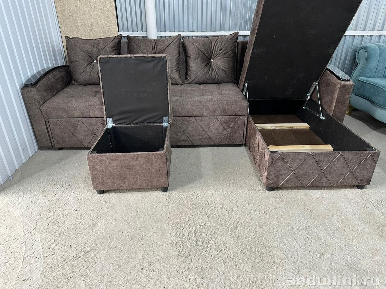 Пуф дополняет комплект и также имеет подъемную крышку для хранения. Это хорошее решение для тех, кто ценит практичность и хочет купить мебель в Дагестане, сделанную с учетом современных требований.