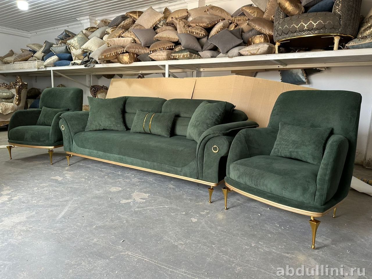 - Комплектация: диван, 2 кресла, декоративные подушки в тон.