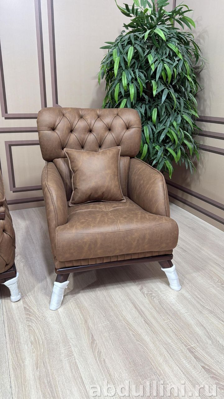 - Спинки дивана и кресел украшены капитоне (ромбовидная стяжка), что добавляет объем и элегантность.