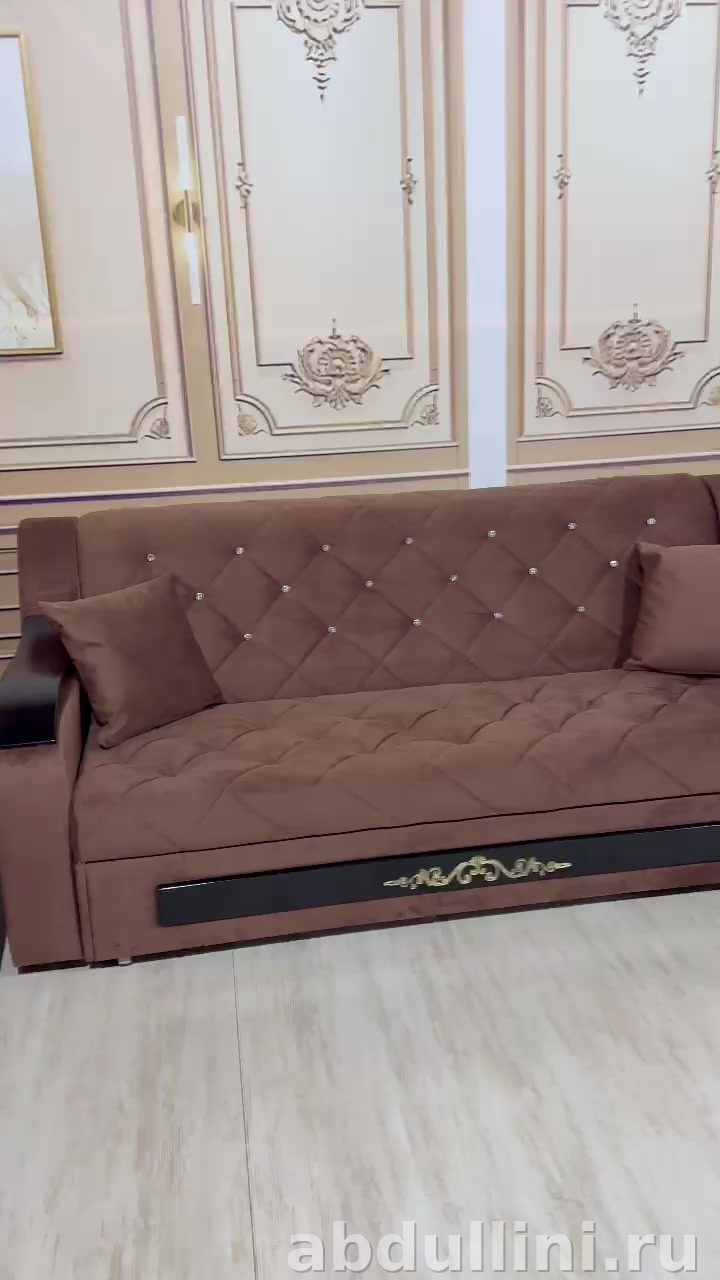 - Материалы: каркас из дерева или ЛДСП, обивочная ткань — плотный велюр или микровелюр, наполнитель — пенополиуретан.