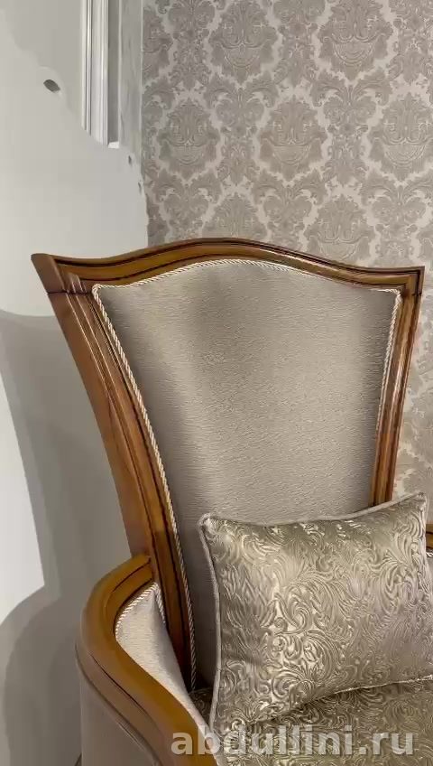 Комплект подойдет для просторной гостиной. Диван с капитонной спинкой, изогнутыми подлокотниками. В комплекте декоративные подушки разных размеров.