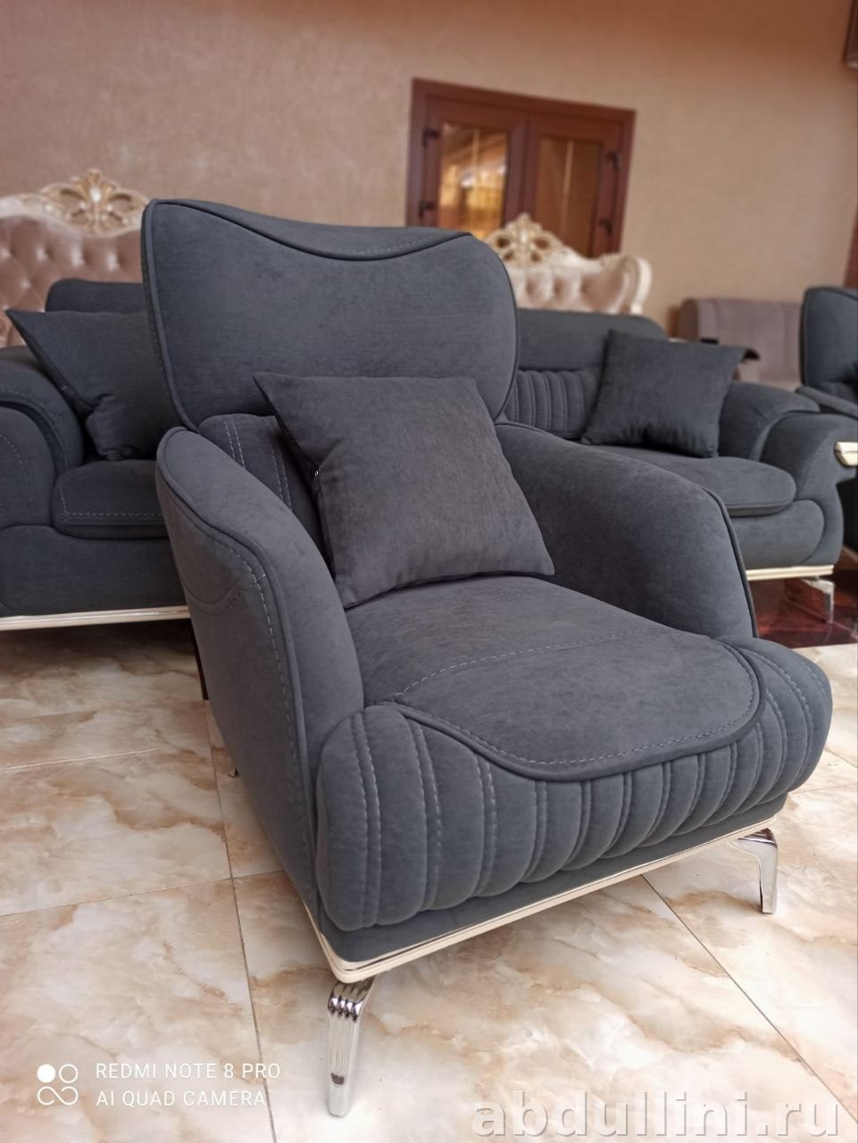 Комплект мебели 2962 — это стильное и удобное решение для вашего интерьера. В набор входят диван и два кресла, которые идеально подходят для гостиной или зала. Цвет обивки — насыщенный серый с графитовым оттенком, что делает мебель универсальной для любого стиля.