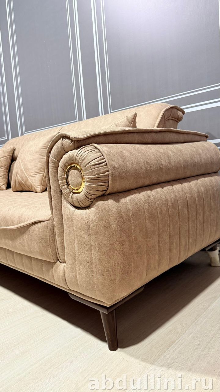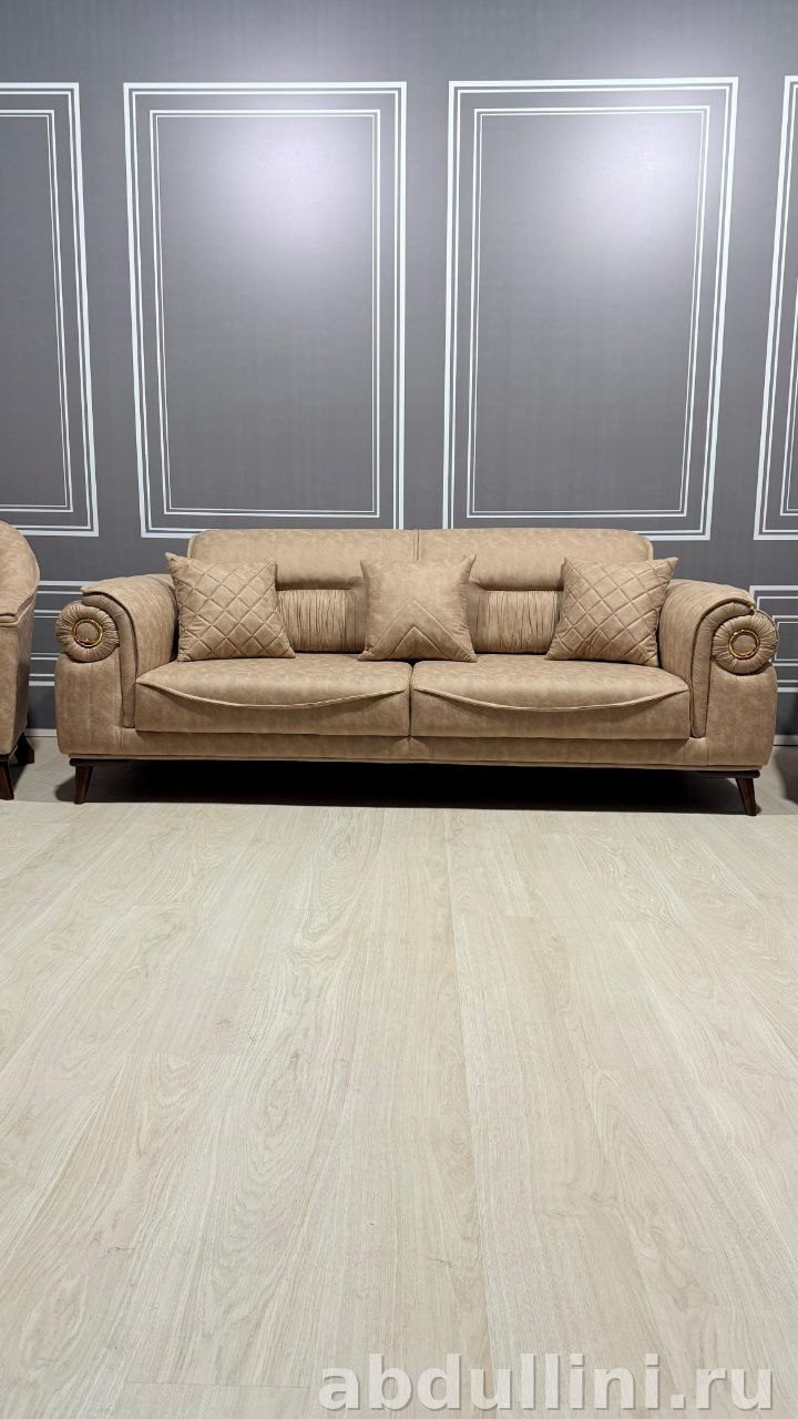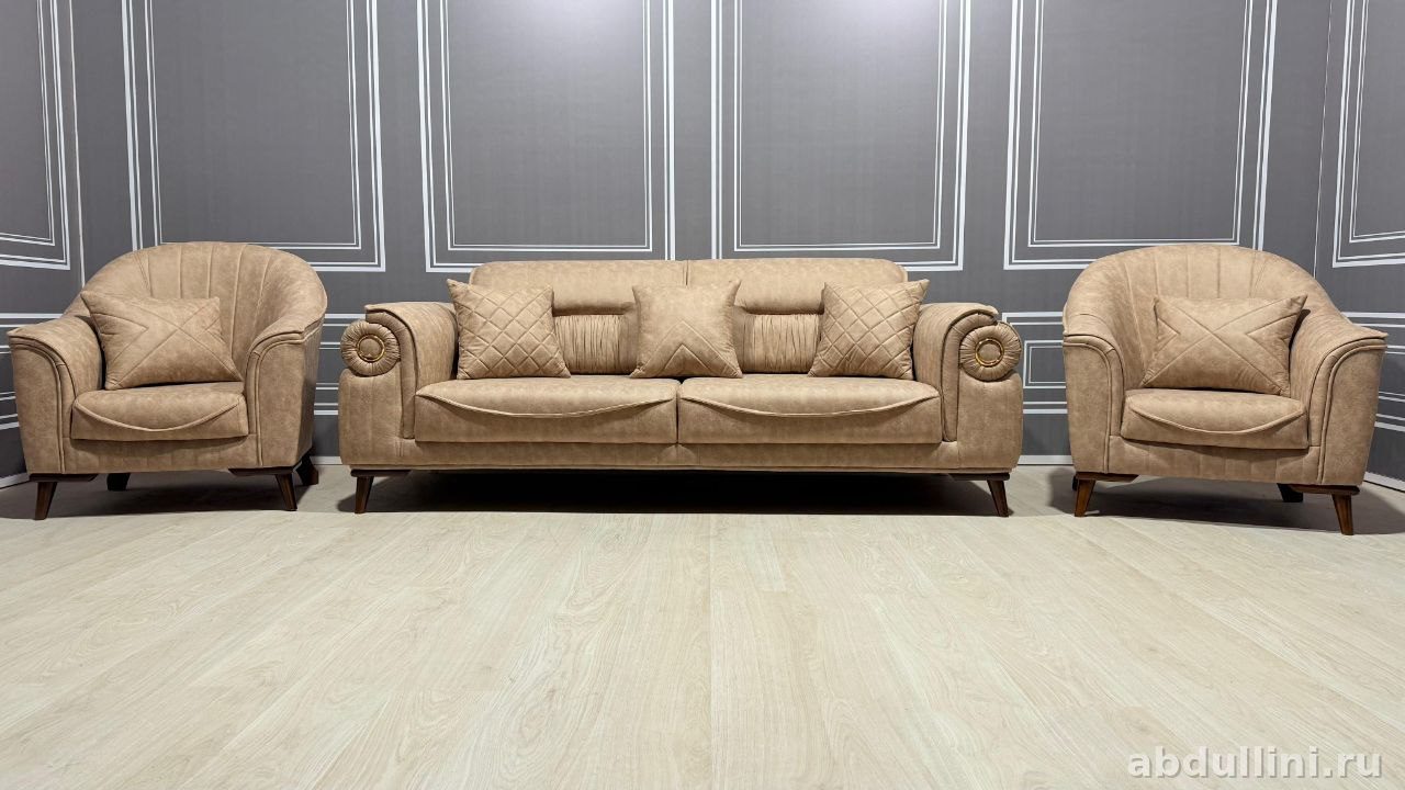 Комплект мягкой мебели «ЮсриЯ» — это диван и два кресла, выполненные в едином стиле и цвете. Обивка из ткани Ибица придает мебели красивый вид, а высокие показатели износостойкости делают ее практичной в использовании. Цвет — приглушенный бежевый, напоминающий песок или светлую карамель, создает атмосферу тепла и уюта.