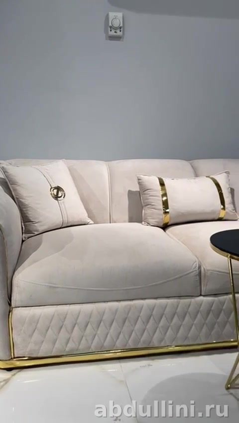 Турецкий угловой диван в бежевом исполнении. Размеры 2.40/2.80 метра — подойдет для просторных гостиных.