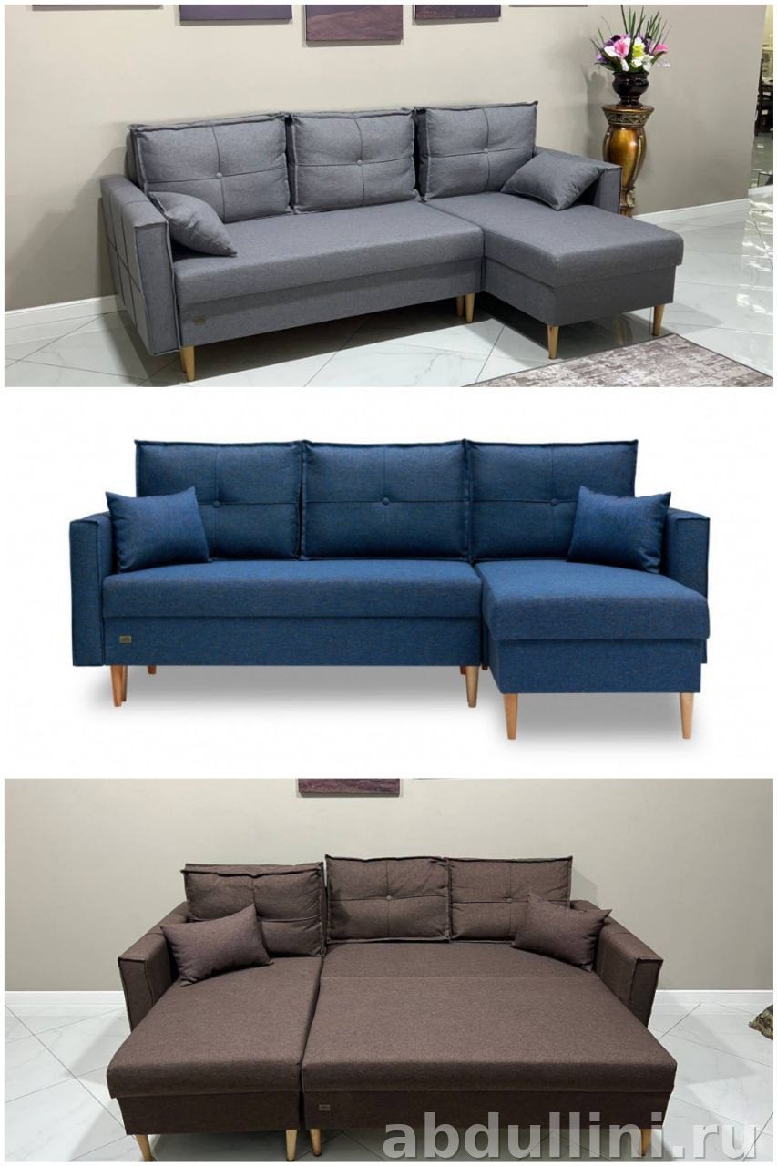 удобный и удобный угловой диван для дома или офиса. В комплекте — трехместная секция и оттоманка, которую можно ставить слева или справа. Подходит для небольших гостиных и просторных помещений.
