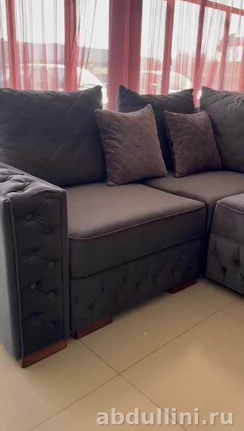 - Комплектация: прямые секции, угловая секция, оттоманка, декоративные подушки.
