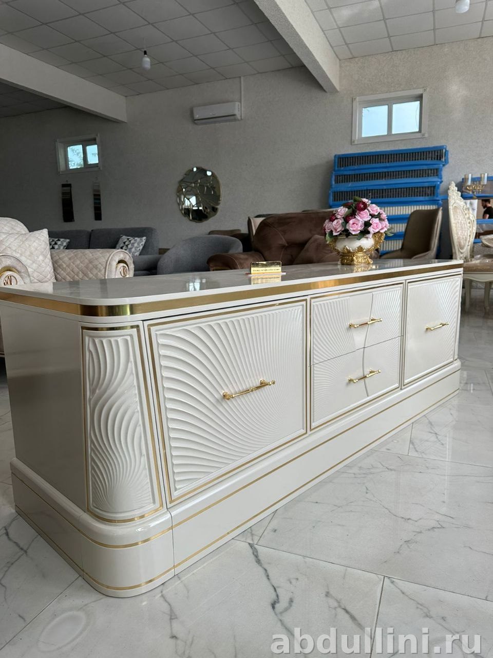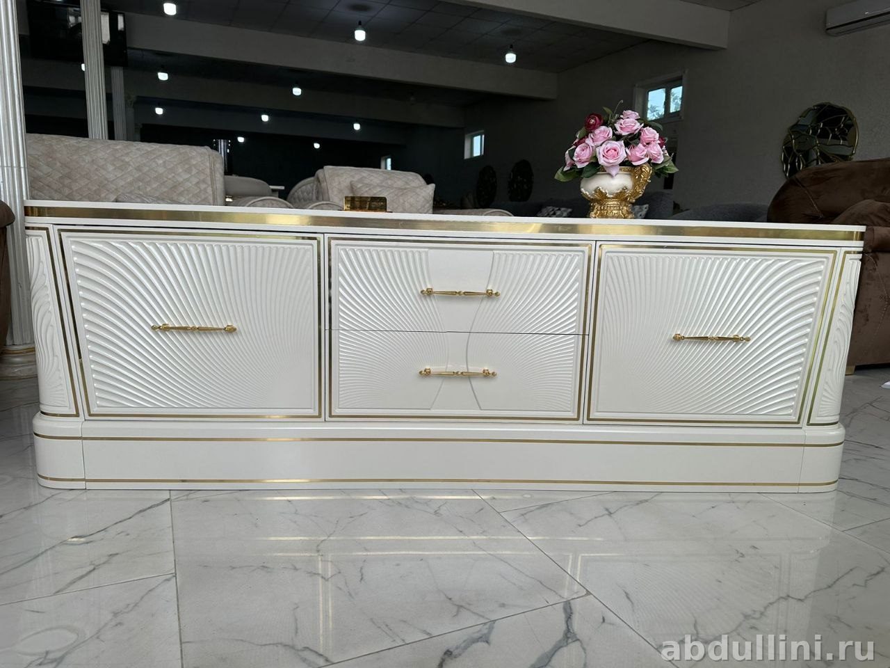 Комод 897 — это стильная и удобная мебель в стиле неоклассика, которая станет украшением любого интерьера. Произведён в Ставрополе, доступен для заказа в Дагестане. Комод выполнен в кремовом цвете с глянцевым покрытием, дополнен золотистыми декоративными элементами, что придаёт ему красивый и модный вид.