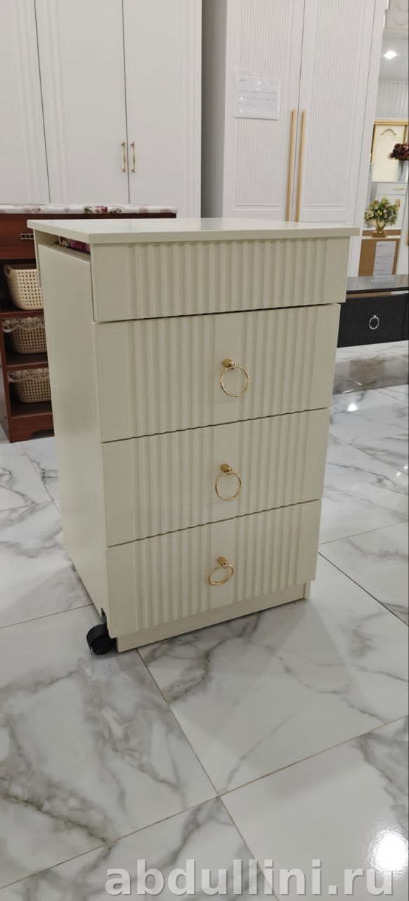 Приставная тумба в стиле неоклассика. Подойдет как дополнение к туалетному столику или рабочему столу. Светлый кремовый цвет (слоновая кость) с матовой отделкой — легко впишется в любой интерьер.