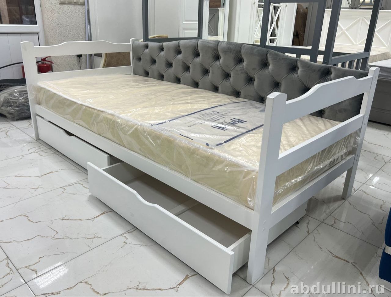 удобная и стильная кровать-тахта для детской комнаты. Изготовлена из массива бука, что гарантирует долговечность и надежность. В комплекте идет матрас размером 90×200 см, который подходит для комфортного сна ребенка.