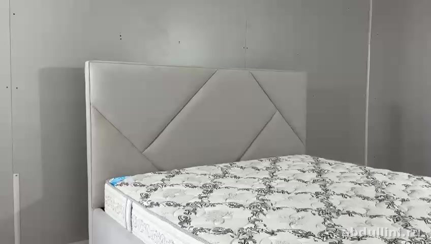 Цвет кровати — светло-серый, нейтральный оттенок, который легко вписывается в любой интерьер. Обивка матовая, мягкая на ощупь. Матрас имеет узорчатую поверхность в бело-серой гамме. Доступны два размера: 160×200 см и 180×200 см.