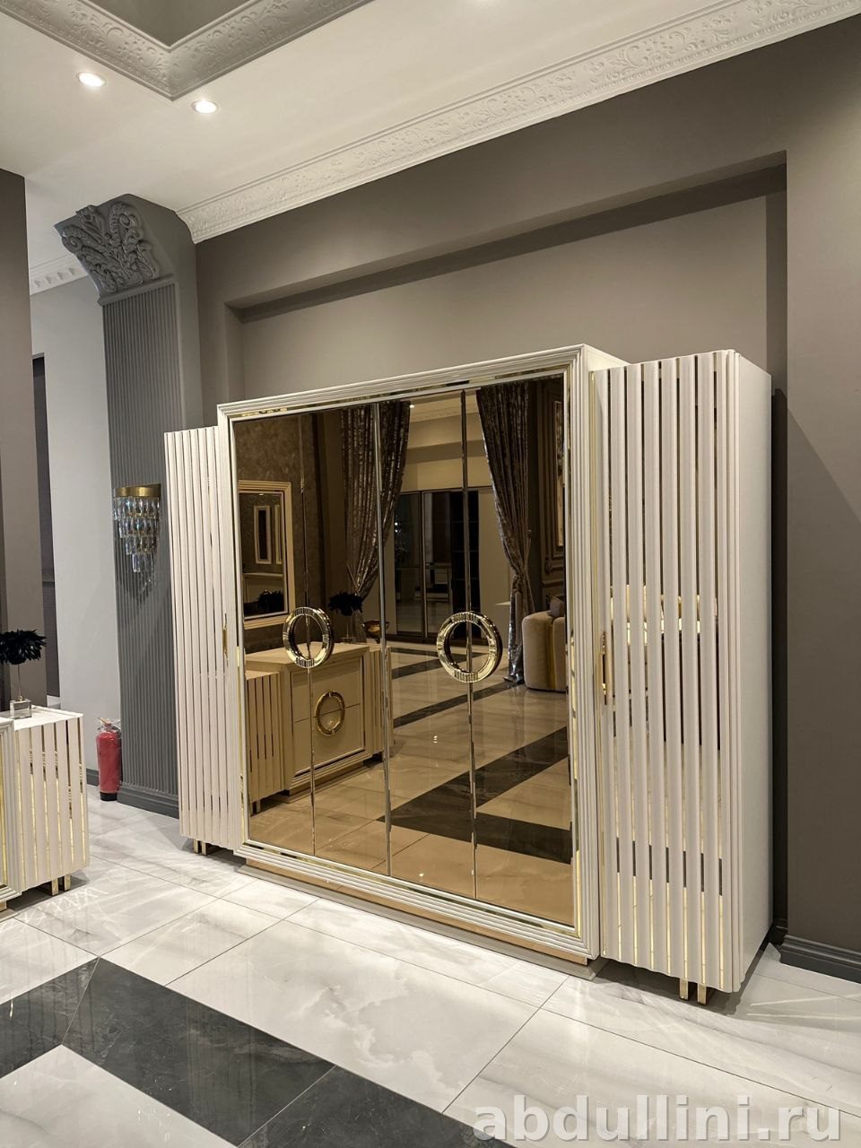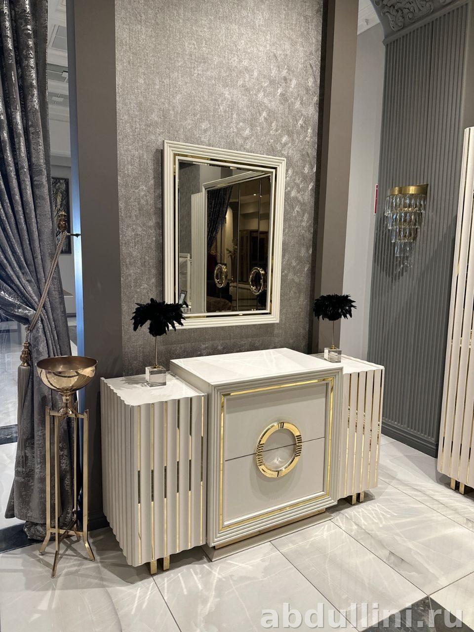 - Комод с крупной золотистой фурнитурой