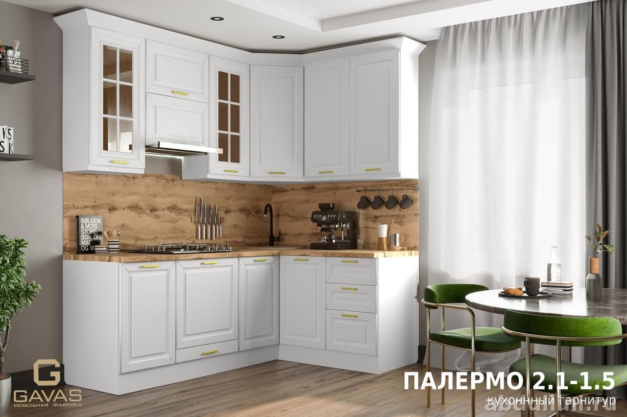 Кухонный гарнитур «Палермо» в белом цвете — это практичное и стильное решение для вашей кухни. В комплект входят верхние и нижние шкафы, угловые элементы, выдвижные ящики, открытые полки и вытяжка. Гарнитур собирается на два угла, что даёт эффективно использовать пространство.