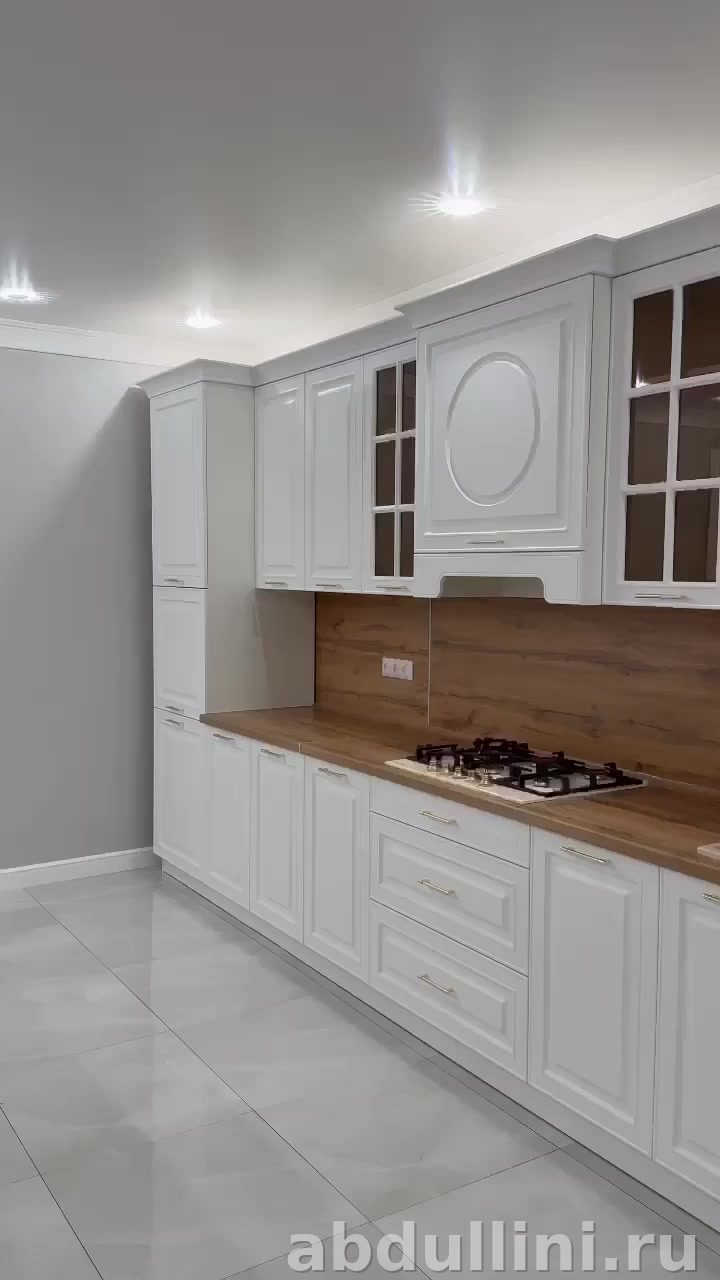 Кухонный гарнитур ‘Эмилия’ — это продуманное решение для современной кухни. В комплект входят напольные и навесные шкафы, столешница с интегрированной мойкой и варочной панелью. Фасады выполнены в белом матовом цвете, фурнитура — золотистая, что добавляет красивый акцент.