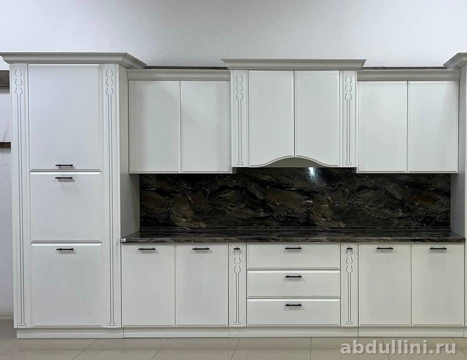 Кухонный гарнитур «Гамбург» от фабрики ARINA_HOME (Ставрополь) — это удобное решение для современного дома. Белые матовые фасады сочетаются с мраморной столешницей и фартуком, создавая простой и свежий образ.