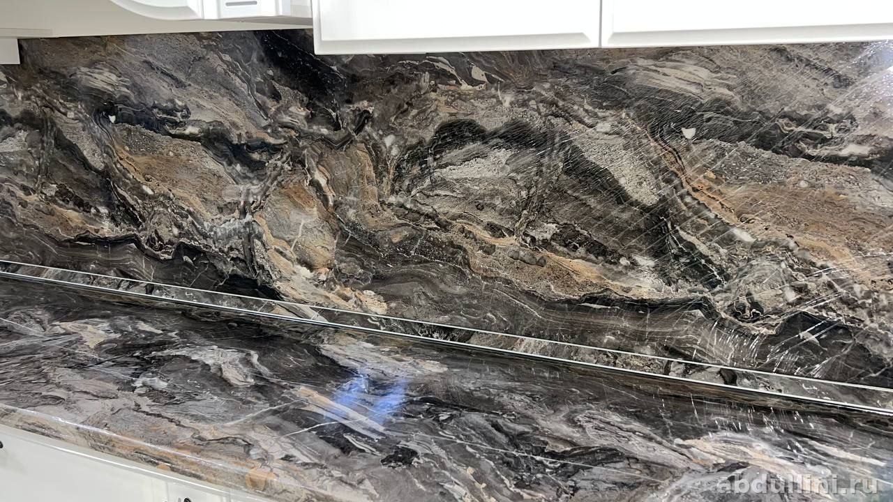 - Материалы: корпус — ЛДСП, фасады — МДФ с матовой эмалью, столешница — искусственный камень (имитация мрамора).