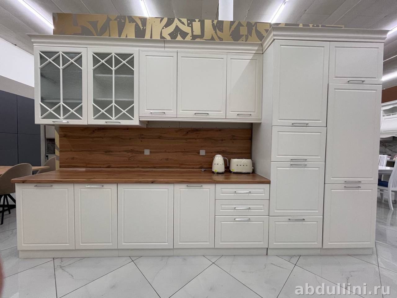 - Стекло в дверцах верхних шкафов.