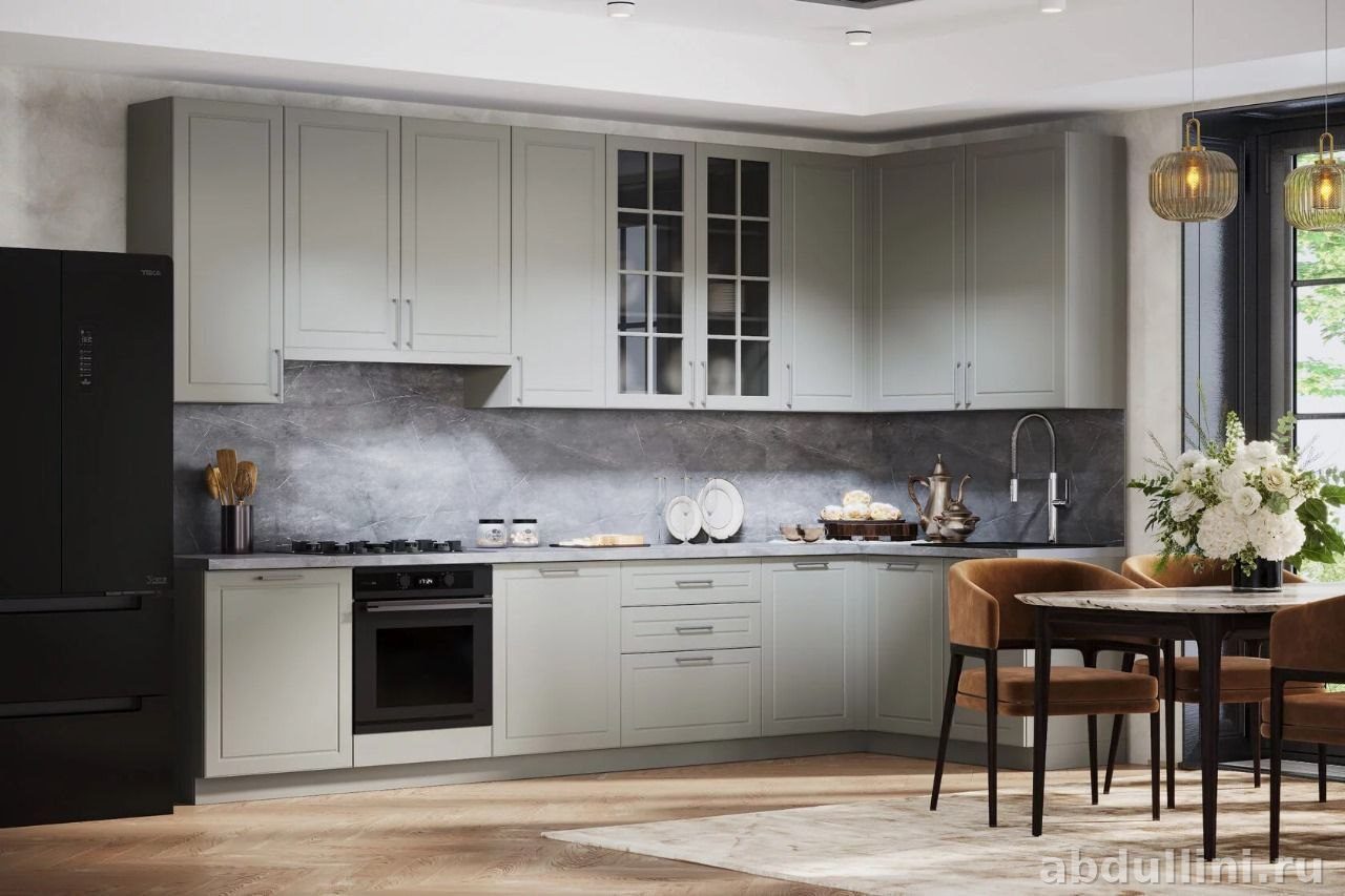 удобная кухня в серо-песочном цвете с продуманной компоновкой. Производство Россия, сборка под ваш размер.