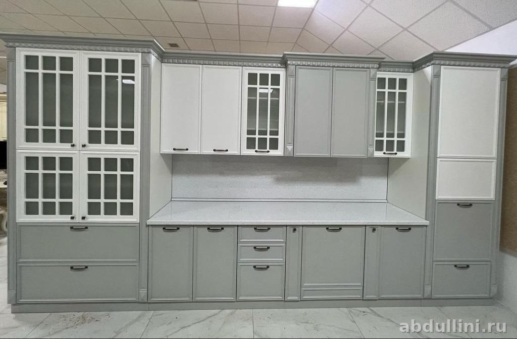 Кухня Луна — это готовое решение для тех, кто ценит практичность и эстетику. Гарнитур состоит из верхних и нижних шкафов, выполненных в неоклассическом стиле. Основной цвет — светло-серый с белыми акцентами, отделка матовая, что делает кухню современной и легко вписываемой в любой интерьер.