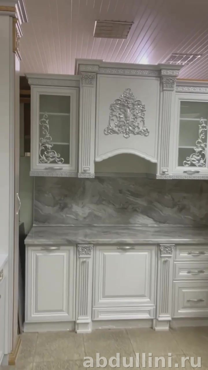 Кухня Венеция: белый глянец и серебристые фасады