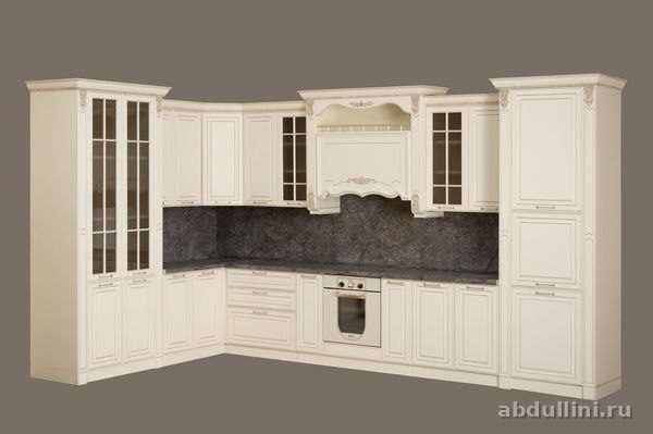 Кухня в классическом стиле с фрезерованными фасадами и светлой матовой поверхностью. Цвет — слоновая кость. В комплекте: