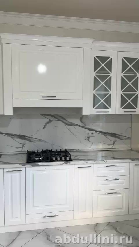 Гарнитур выполнен в стиле неоклассика, сочетающем классические элементы и современные технологии. Подходит для мебели на заказ от производителя в Дагестане.