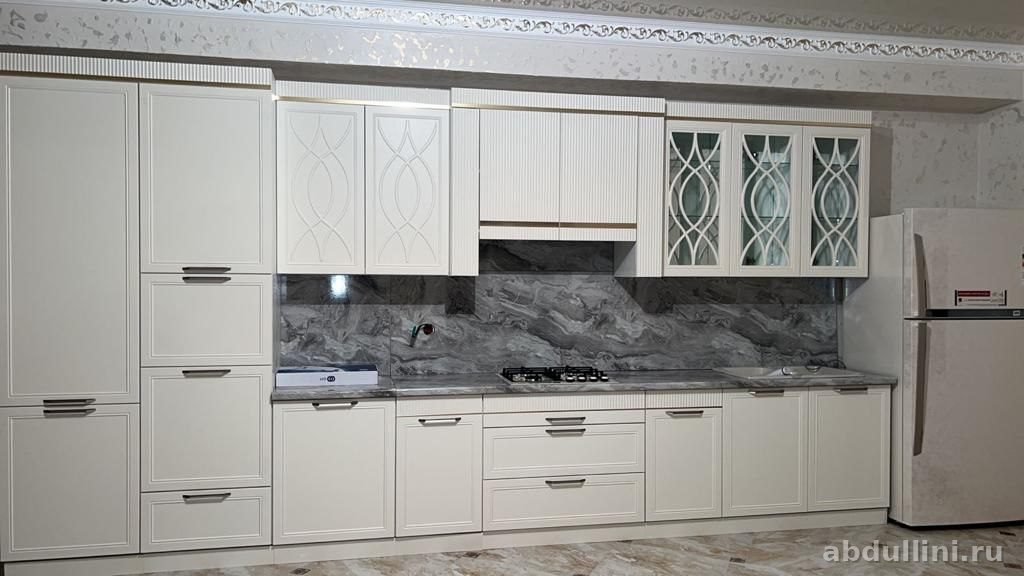 Стиль: Неоклассика. Гарнитур сочетает классические узоры на фасадах с современными материалами и конструкциями.