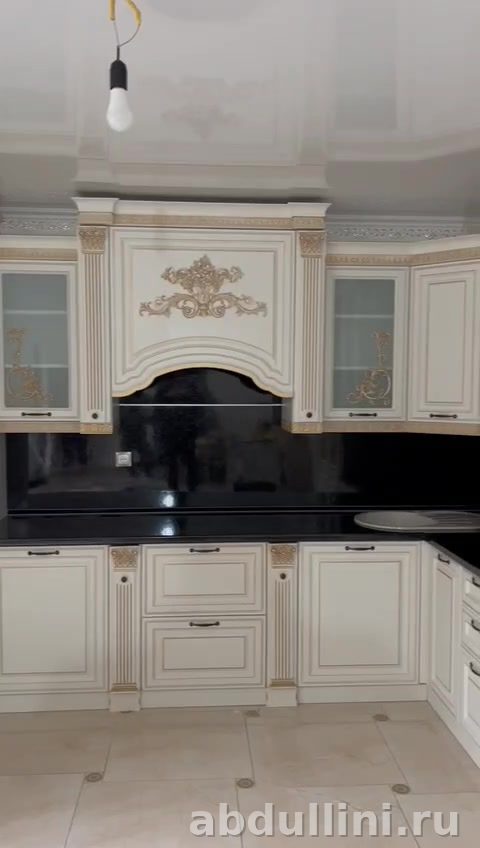 Кухня «Венеция» — классика с элементами неоклассики. Фасады цвета слоновой кости с глянцевой отделкой, золотистой патиной и фрезерованными деталями. Подходит для установки на обе стороны.