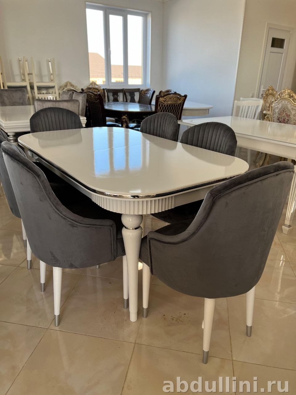 Набор 2439 включает раздвижной стол и шесть стульев в стиле неоклассика. Это хорошее решение для современной столовой или гостиной.