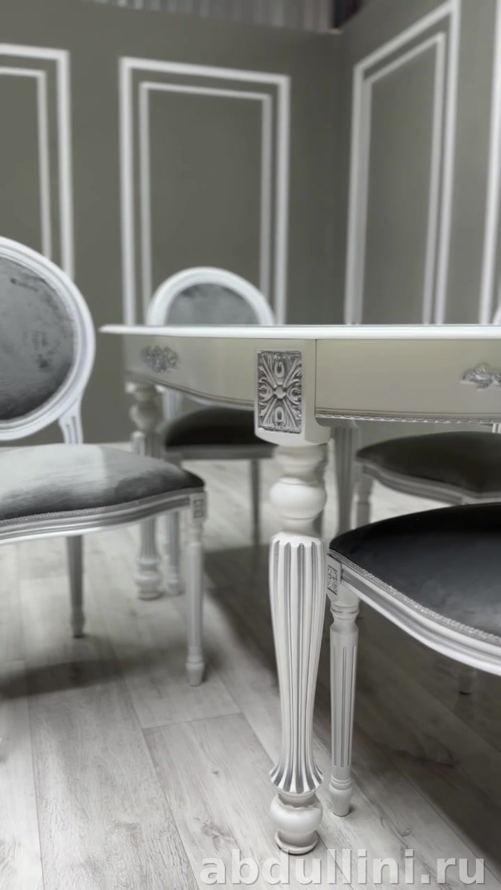 Комплект включает раздвижной обеденный стол и пять стульев в стиле неоклассика. Идеальный выбор для тех, кто ценит элегантность и функциональность.