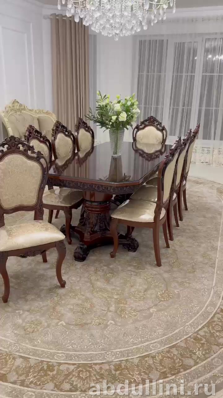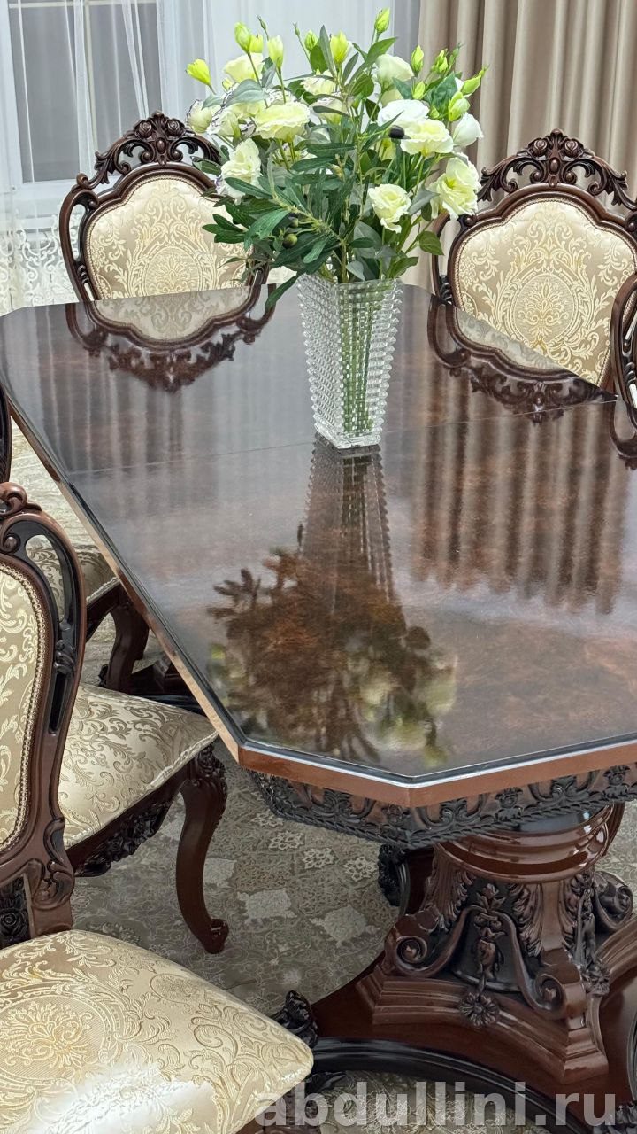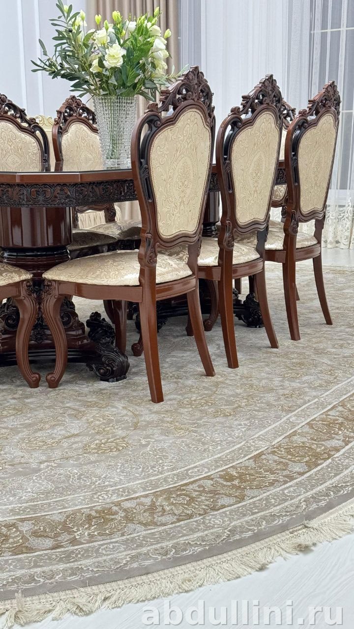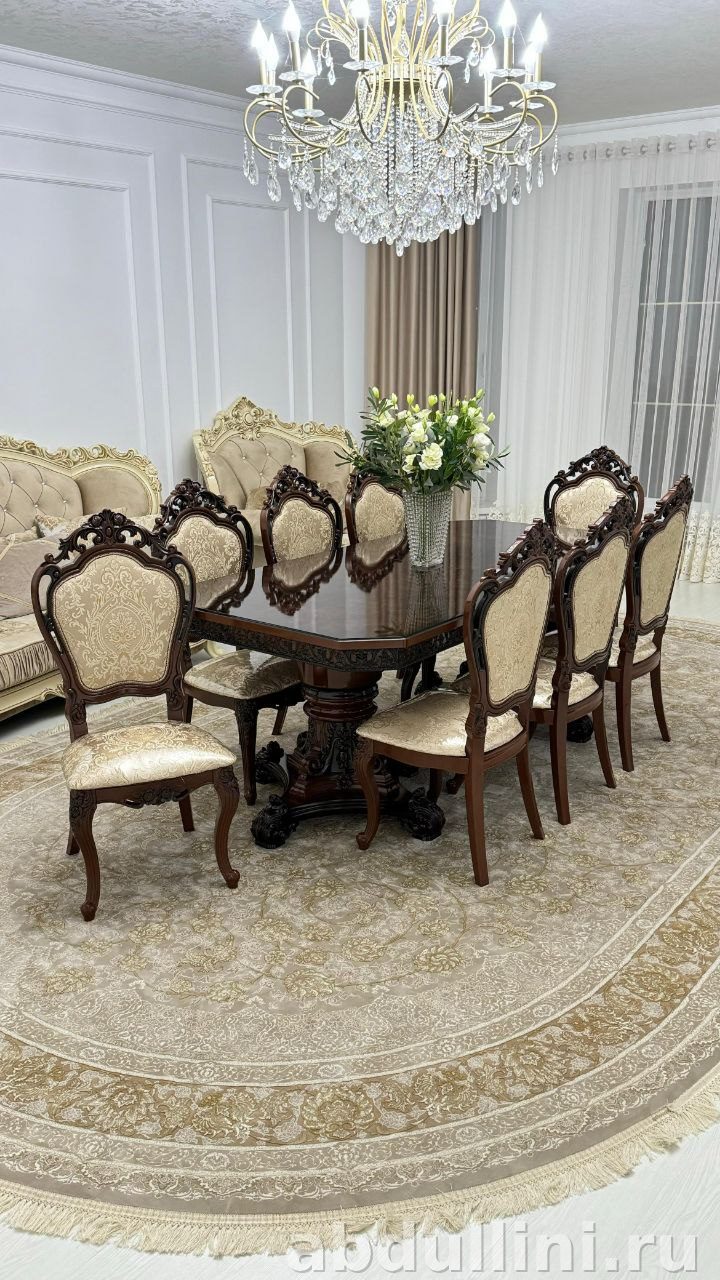 Мебель выполнена вручную с вниманием к деталям. Подходит для просторных обеденных зон и интерьеров в классическом стиле. Купить в Дагестане можно напрямую от производителя.