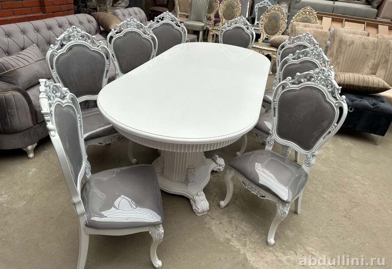 Комплект мебели для обеденной зоны включает раздвижной стол и стул. Стол с размерами 240/280 см подойдет для большой семьи или гостей. Стул выполнен в классическом стиле с удобной посадкой.