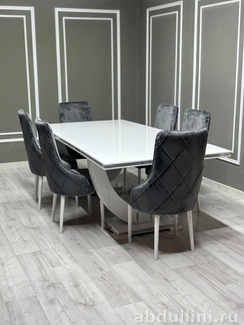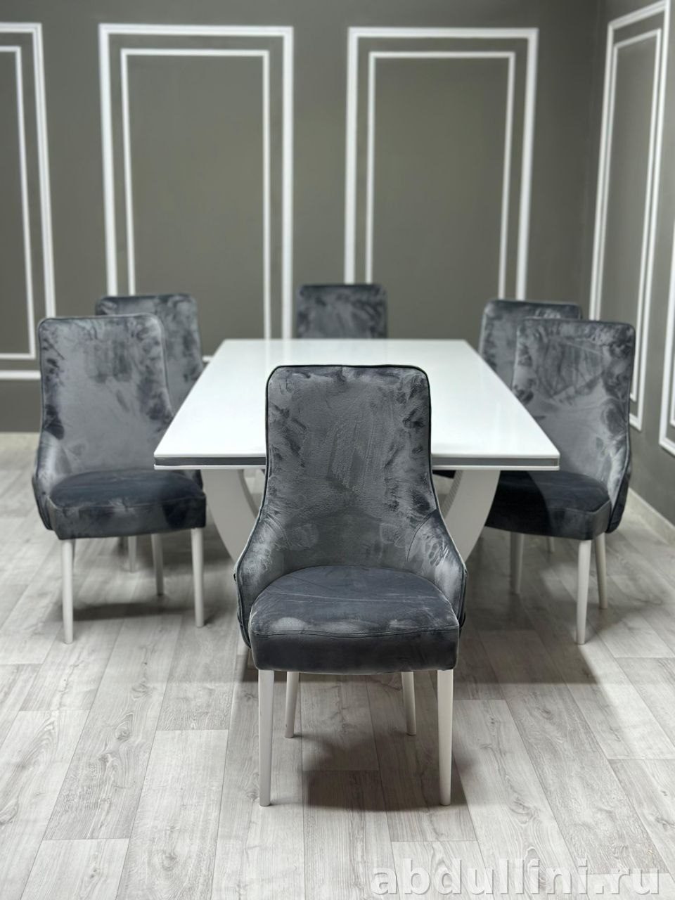 Готовый набор для столовой: стол на 6 персон и 6 стульев в современном стиле. Подойдет для просторных кухонь и гостиных.