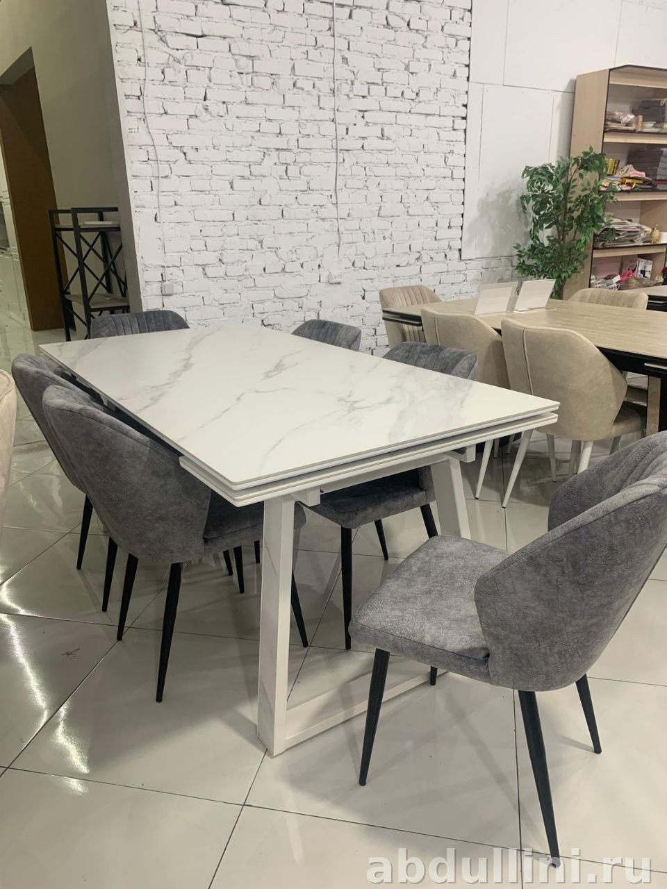- Столешница стола — керамогранит или МДФ с мраморным покрытием.