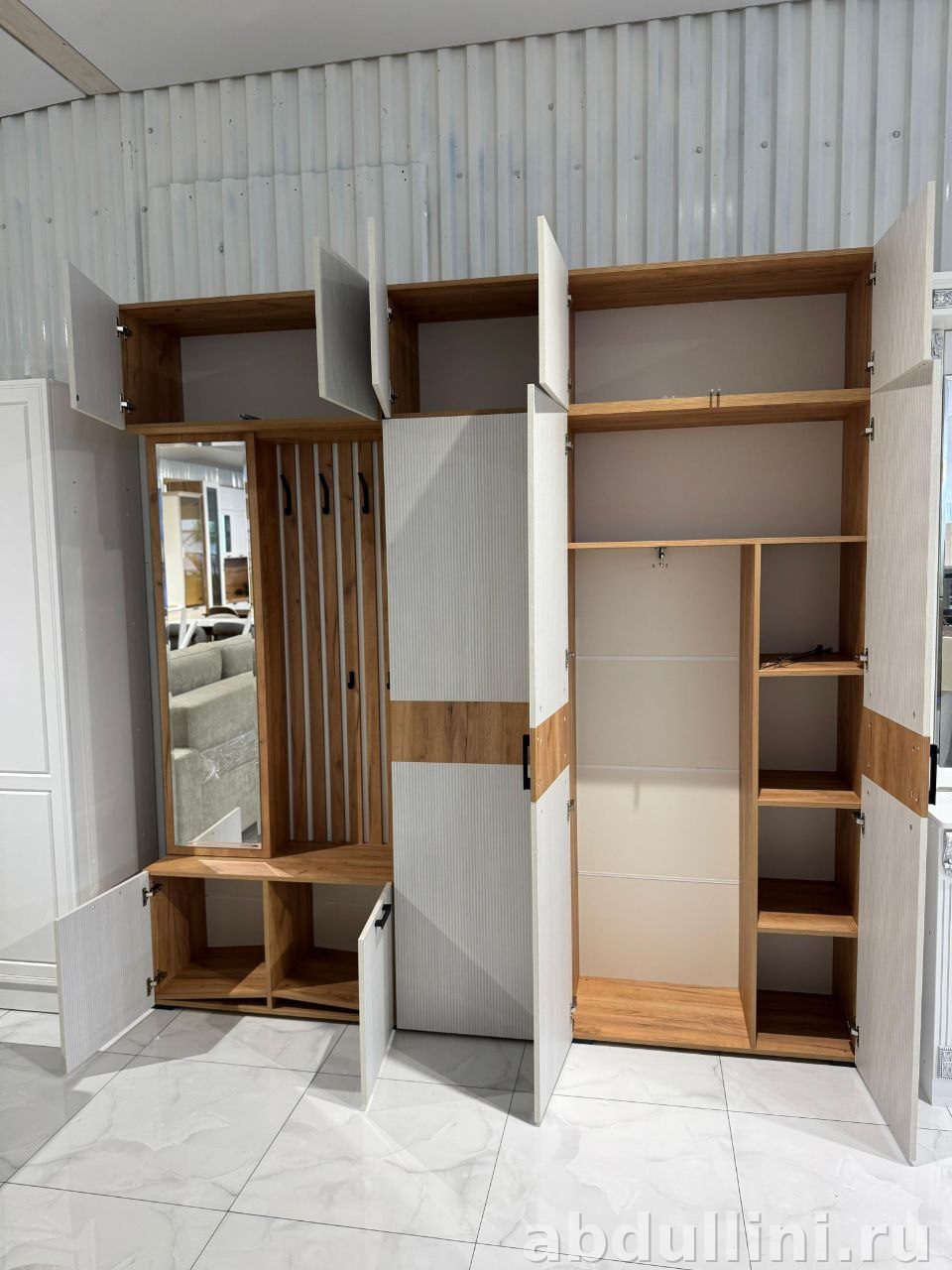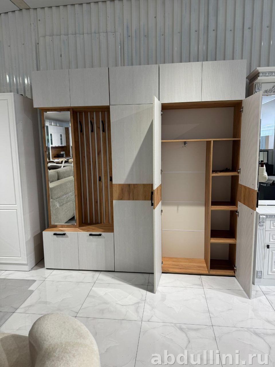 удобный мебельный комплект для прихожей или гардеробной. Сочетает удобство хранения и модный дизайн. Идеально подходит для средних и больших помещений.