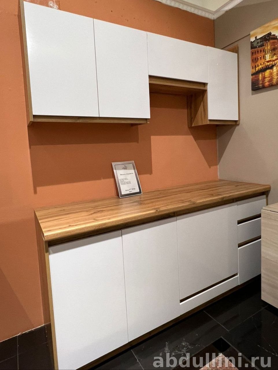 - Цвет и отделка: Белые матовые фасады гармонируют с отделкой корпуса и столешницы под светлое дерево. Текстура дерева добавляет теплоту и уют.