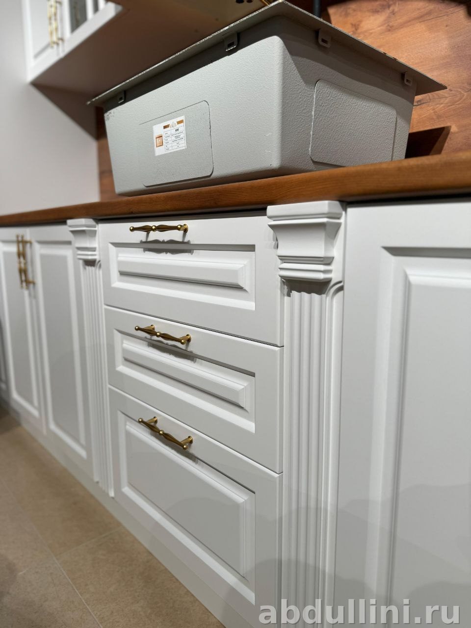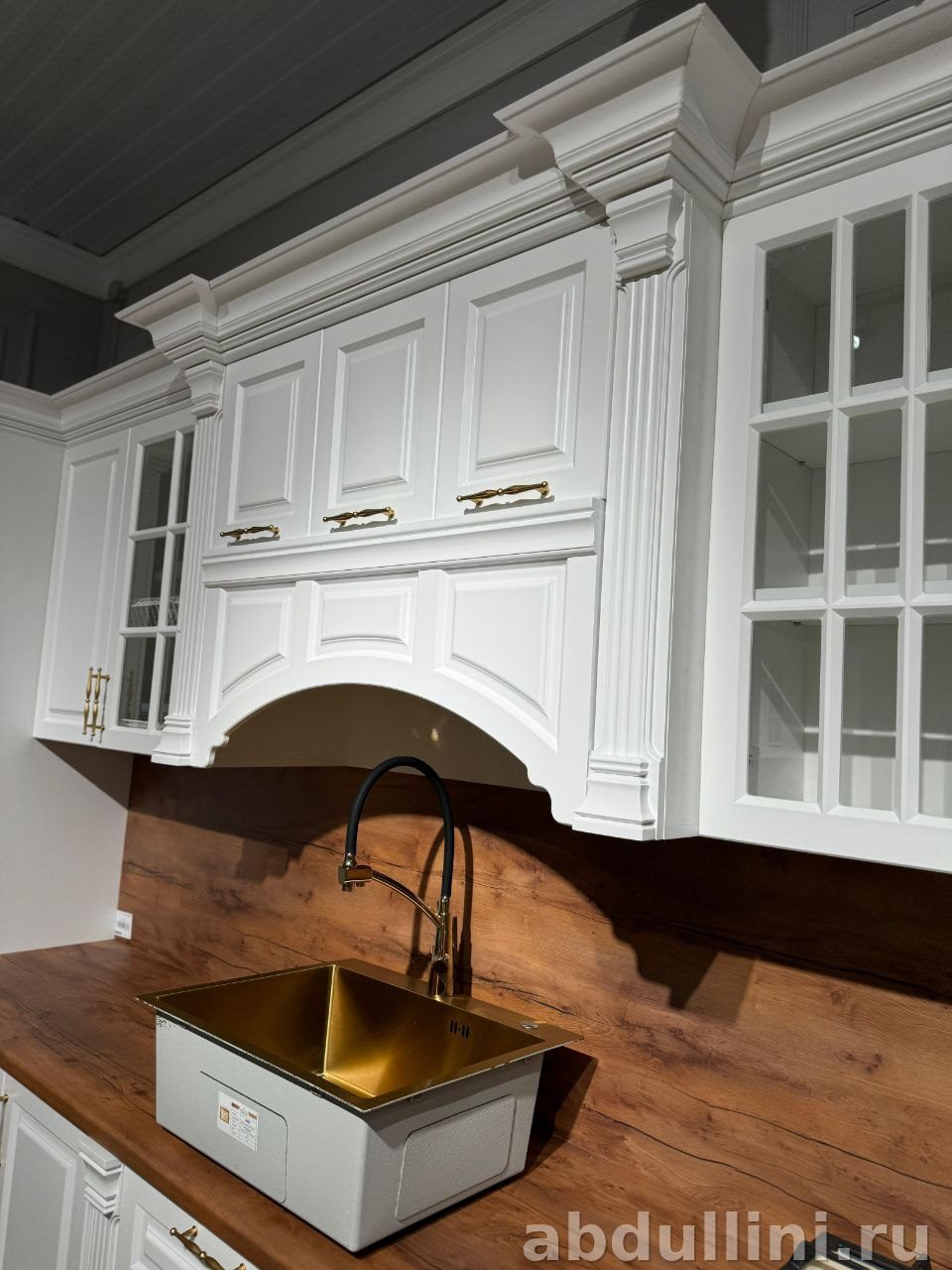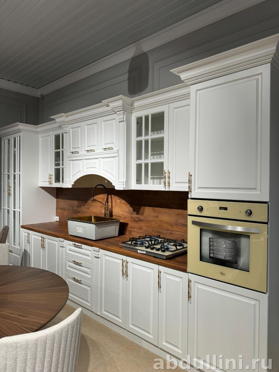 - Стиль: классика с филенчатыми фасадами и декоративными элементами.