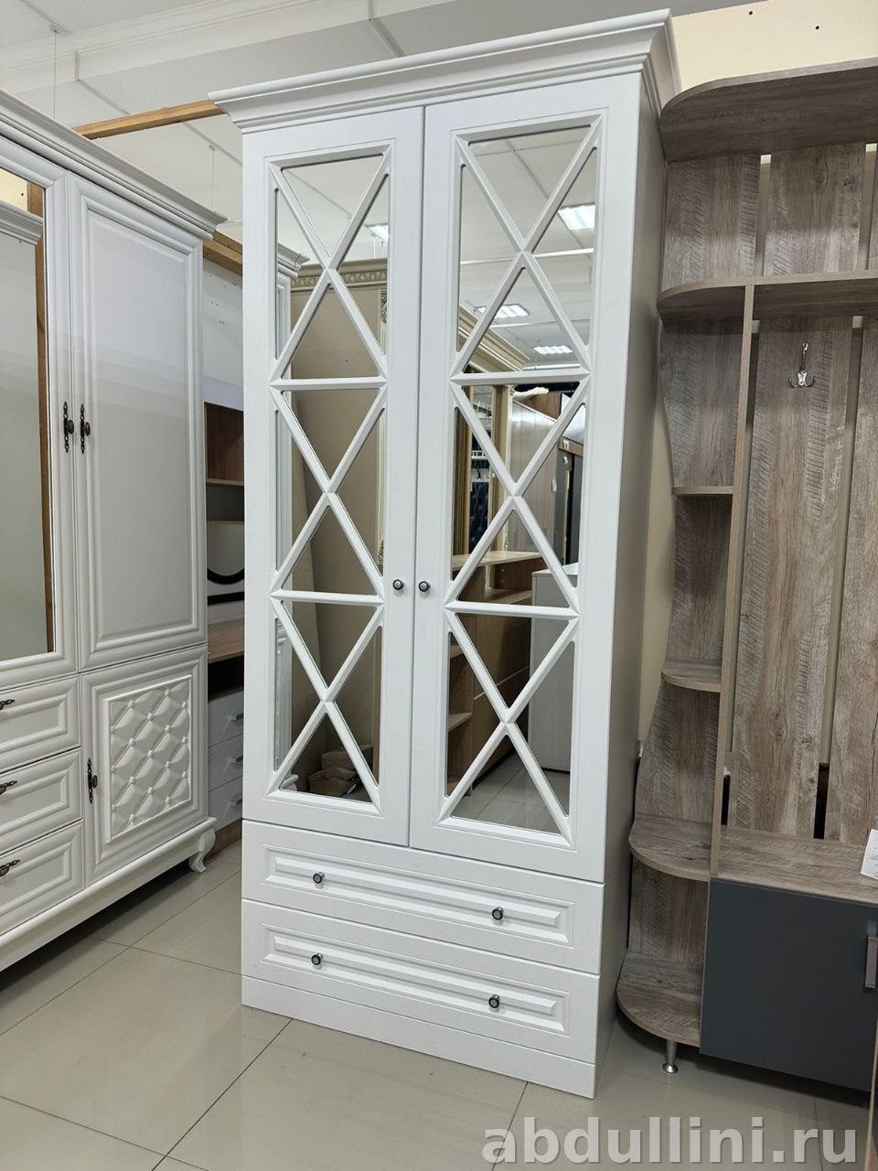 Шкаф «Бьянка» — это хорошее решение для тех, кто ценит практичность и модный дизайн. В комплект входит платяной шкаф с двумя распашными дверцами и двумя выдвижными ящиками в нижней части. Основной цвет — белый, отделка выполнена эмалью или краской, создающей гладкую поверхность с умеренным глянцем.