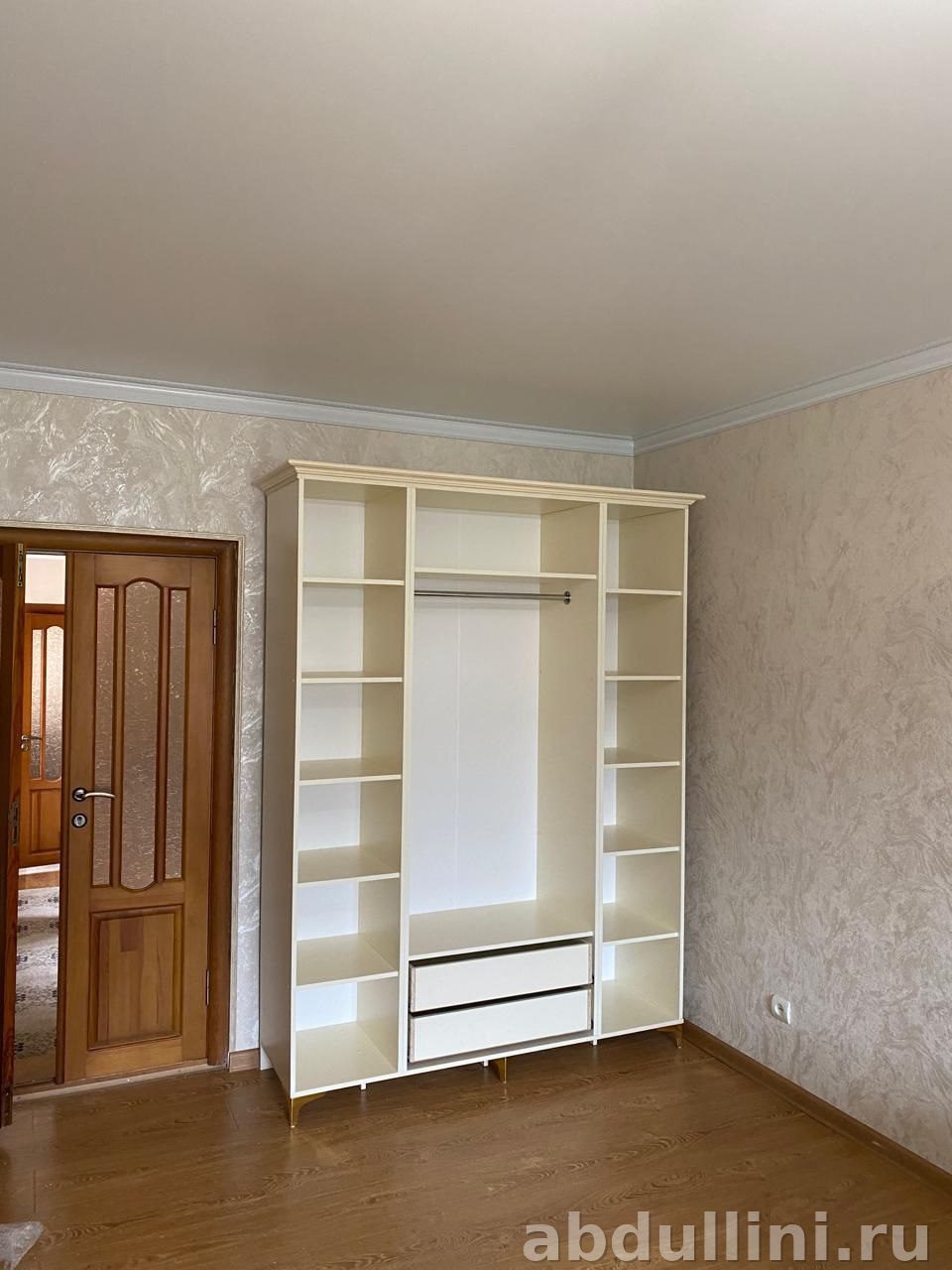 Шкаф подойдет для спальни или гостиной. Пространство организовано удобно: верхние полки для крупных вещей, ящики — для мелочей.