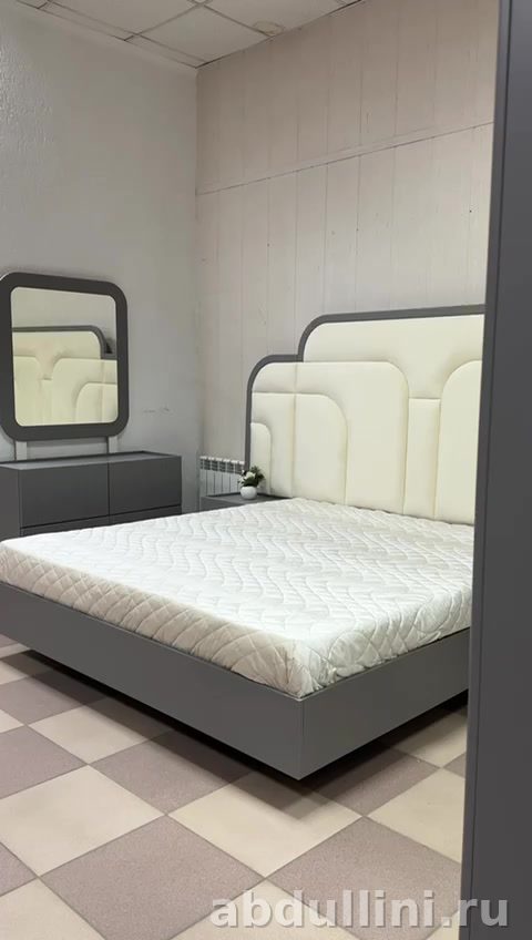 Комплект из шкафа, комода и кровати 180×200 см. Производство Краснодар, сборка в Дагестане. Цвет — серый, строгий и удобный.
