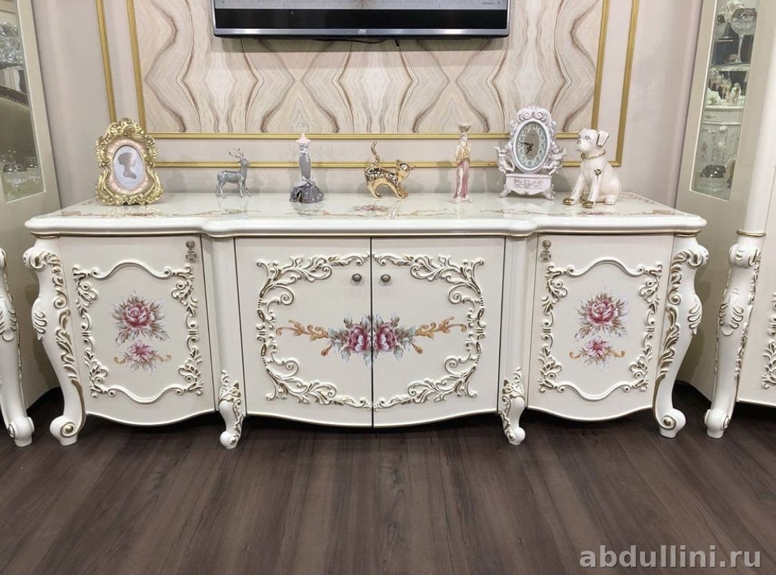 Комплект для гостиной в классическом стиле от фабрики Арида. Включает ТВ-тумбу и два шкафа-витрины — готовое решение для хранения и демонстрации вещей.