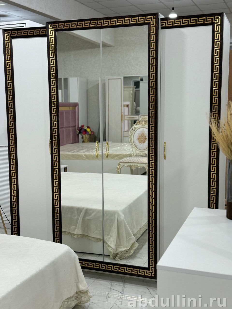 Комплект спальни 1️⃣8️⃣1️⃣3️⃣ выполнен в стиле неоклассика и включает всё необходимое для комфортного обустройства спальни. Основной цвет — белый с глянцевым покрытием, которое визуально расширяет пространство. Декоративные элементы выполнены в золотистом и темно-коричневом цветах, добавляя изысканности.