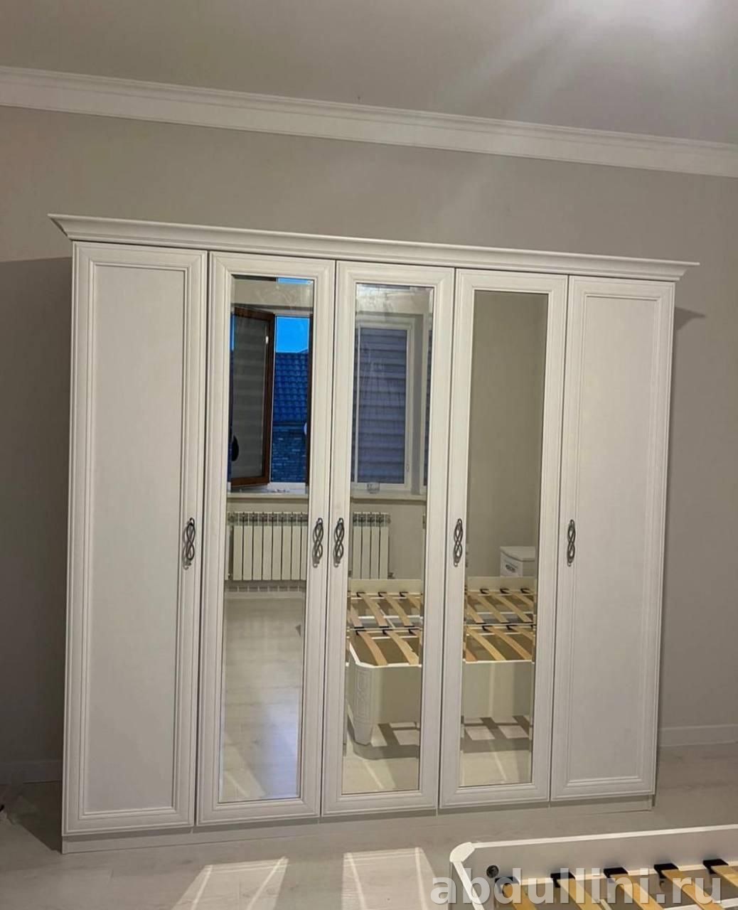 - Шкаф: Размеры — 2382х657х2376 мм. Шесть створок, три из которых зеркальные.